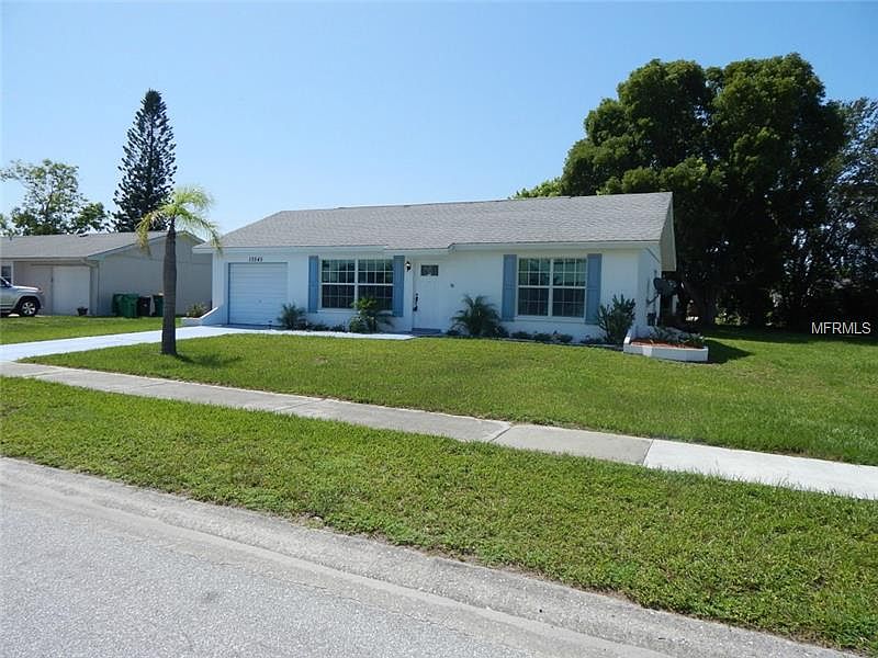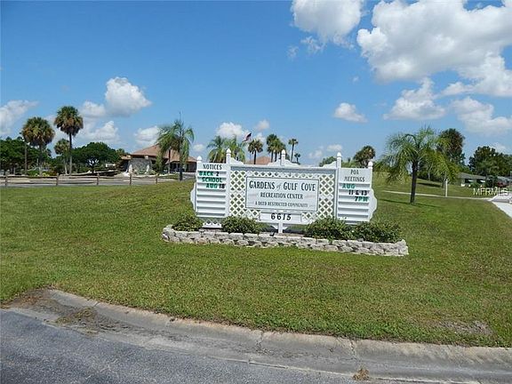 Wow! Move in ready home for under $100,000!! Updated home in the community of Gardens of Gulf Cove. This home is located in an area of newer homes and boasts upgrades galore including fresh interior and exterior paint, new front door and impact resistant windows, professionally landscaped, new garage door opener, new carpeting, updated bathroom with marble vanity, decorator light fixtures and fans, and new AC fan motor. Kitchen has new garbage disposal, glass top stove, cabinets with lazy susans in corners for efficient storage, and pass thru window to lanai for easy entertaining. New roof being installed and all warranties transferable to new owner! Beautiful and private back yard with mature shade tree, graveled area for storage shed, separate patio off lanai for your barbecue grill, and newly screened lanai with "doggie" door that leads to a fenced area for your pet. Garage has lots of built in storage cabinets on one wall, work bench, and attic is decked for additional storage room. Community features include 2 pools (one heated), clubhouse with kitchen, pool tables, and exercise equipment, and tennis courts, and shuffleboard. Beautiful view of community lake from the pool area. So put this one on your list. You must see to appreciate.