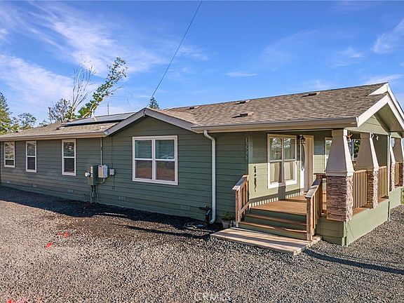 "Home on the Ridge" Immaculate Clayton home with OWNED solar under NEM 2. You will love the extremely low electric bills in this bright and spacious open floorplan home. Large living room with vaulted ceiling and opens to kitchen and dining area. The beautiful kitchen includes pristine wood cabinets, stainless appliances including 5 burner gas range, microwave/hood, dishwasher, refrigerator, farm sink and bar area with drop down lighting and plenty of counter space. Down the hall is the large and private primary suite with bathroom that includes double sink, soaking tub and separate shower. Additionally there are two guest bedrooms, guest bathroom with tub/shower combo and a laundry/mudroom that includes newer washer and dryer. Outside you will find the spacious covered front porch with composite decking perfect for enjoying sunsets, entertaining or just relaxing. Septic system was installed in 2022.