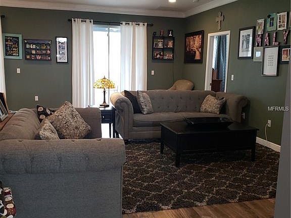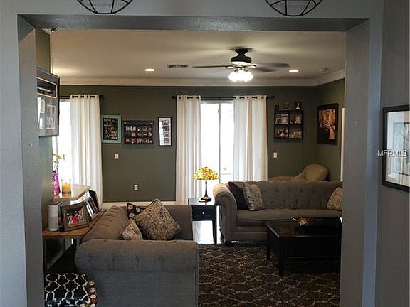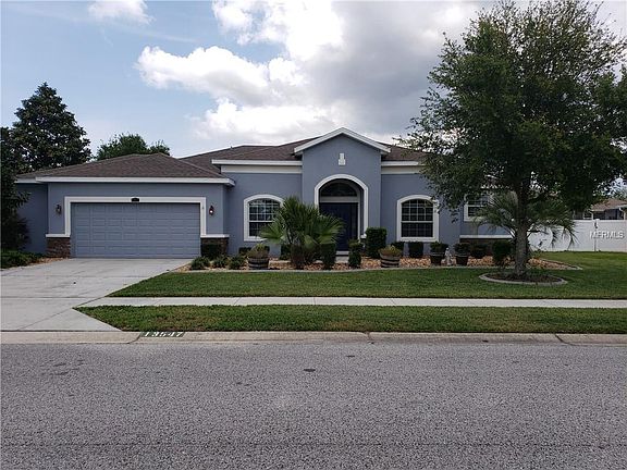 Welcome to this STUNNING 3 bedroom, 2 bathroom, PLUS den home in the highly sought after community Villages of Avalon. This home has it all! From an open floor plan, to updated flooring throughout the entire home, inside laundry room, additional garage storage, and crown molding adorning the high ceilings, you are immediately impressed as you walk through the front door. This home features a separate formal dining area, with big bay windows letting in natural sunlight as you host Sunday dinner, and a separate den/offiice/4th bedroom option with double doors. The large family room is open to the beautiful kitchen with extra dining areas at your high top bar area, and eat in kitchen area. The split floor-plan is idea with a HUGE master bedroom, double walk in his and her closets, and an upgraded on suite bathroom with double sinks, separate shower and a garden tub. 2 large guest bedrooms and bathroom on the opposite side of the home offer a nice guest area or a perfect floor-plan for a growing family. The double sliding glass doors lead out on to an oversize screened in patio overlooking the fenced in backyard. This gorgeous home sits on over a 1/4 of an acre with so much room to grow! This desirable Community offers a cubhouse, fitness center, and community pool perfect for warm summer days! Close to the Suncoast Parkway, shopping, dining, and schools, you couldn't ask for more!