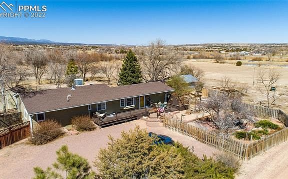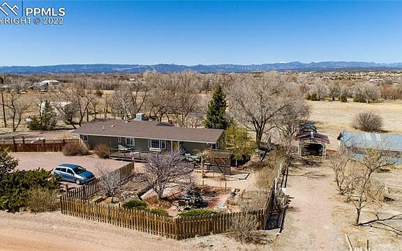 Ready to get away from it all, but still need access to the city? This is the place for you. This home sits in a quiet neighborhood on a nearly five acre lot, with just enough trees to ensure privacy, but still let you enjoy the land. Get away from the lights, turn off your porch light and spend an evening gazing at the stars, you'll be AWED. Enter into the large living room with the kitchen to your right. In the kitchen you'll find a center island that stays, a delightful nook that the current owner uses as a coffee nook, tons of cabinet space and a pantry! The dining room is a wonderful space with plenty of room for a china hutch and a large table, it also offers a walk out to the back yard. Head down the hallway to find bedroom #2 on the left, an office on the right that can easily be used as a 3rd bedroom if you desire (seller willing to leave armoire to act as a closet if you desire). The office also offers access to the rear of the property. The hallway full bath also features a laundry room at the back of it. Lastly enter the large master bedroom where you could easily fit a king size bed and your other furniture. Here you'll find a newly added attached bathroom with a double vanity and walk in shower and a very nice sized walk in closet. Outside the home you'll find a sturdy oversized two car carport. Around back you'll find an open shed, currently used for hay; a quonset hut, currently used as a horse stable; there is a large shed/barn that offers great storage and has power to it; directly behind the house are two sheds, the larger of which also has power to it (and is where the seller has the storage freezer and fridge). Enjoy the two eating areas set up out front, the deck on the front of the house, or sit in the swing in the back and watch your horses frolic. You're only 20 minutes from either Canon City or Pueblo West, and only 40 from Colorado Springs; what's not to love. You'll love both the peace and quiet and the functionality of this property.