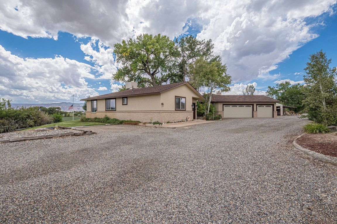 Welcome to this beautifully updated 3-bedroom + office, 2-bathroom home set on 5.6 irrigated acres with a barn and room for horses. Inside this sprawling rancher, you’ll find gorgeous hardwood flooring, custom cabinetry, a spacious sunroom, plus a custom wet bar and sitting area - perfect for entertaining. The kitchen and flooring were tastefully updated in 2020, blending modern finishes with timeless country charm. Additional upgrades include a new roof and stucco in 2018, offering peace of mind for years to come. Enjoy your own slice of heaven with wide-open expansive views of the Colorado National Monument, abundance of wildlife, and plenty of room to make it your own!