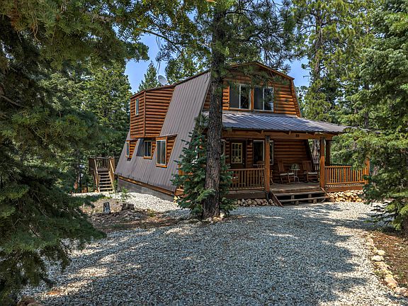 Tucked behind the trees is a classic cabin with loads of sought after features. Large covered front deck welcomes you in, full height ceilings in the living room with wood burning stove. Newer wood flooring throughout the main floor. Modified A frame design, with plenty of windows for natural light. Dining room is off the galley kitchen. Full bathroom and bedroom located on main floor. New washer and dryer installed. Uncovered back deck overlooks the fire pit. New railings lead upstairs to the large loft bedroom w/ 3/4 bath and bonus sleeping area. Horseshoe driveway recently rocked provides plenty of parking for family and guests.