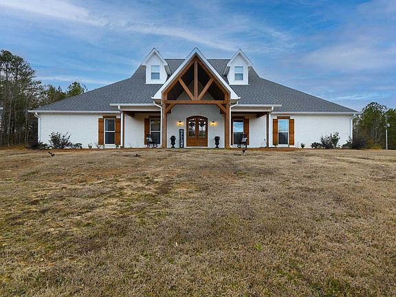 This beautiful, custom home has to many amenities to list! It sits on 2 acres, with the option of adding 3 additional acres. You will have plenty of space in this all brick, 3,600 sq ft, 3 bedroom, 3 1/2 bath, open concept home with spacious rooms, beautiful cedar beams, 8ft doors and vaulted ceilings! The living room has a large, wood burning, stone fireplace and is open to the kitchen and dining room. Two of the bedrooms are spacious and could both be master suite options! Each suite includes a large bathroom (one with a custom wetroom) and custom walk-in closets w/ built-ins. The kitchen area is complimented with a butler pantry that includes a sink, built-in microwave, and ice machine! You're going to love all the space in the walk-in pantry and have peace of mind with the built-in safe room! There is office space to work from home as well as Central Access internet! Home has 2 water heaters and open cell insulation. There are dedicated areas for a future pool and a nice pond!
