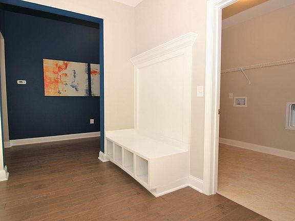 Great split open floor plan with a flex room. Very functional layout with lots of new modern upgrades! Kitchen has light gray cabinets, upgraded granite, contemporary tiled backsplash, gas range, stainless steel appliances and corner pantry. Master has raised double bowl vanity, garden tub and tiled shower. Wood floors in entire living area, tile in wet areas, and carpet in bedrooms. Screened back porch is 9'x25' and perfect for outdoor entertaining. Pictures are of same plan in one of our other communities and are for representation only.