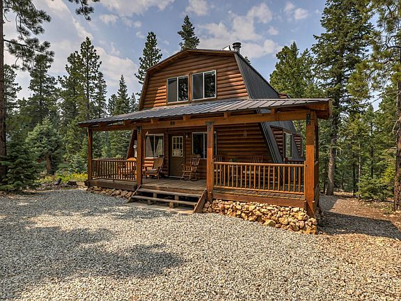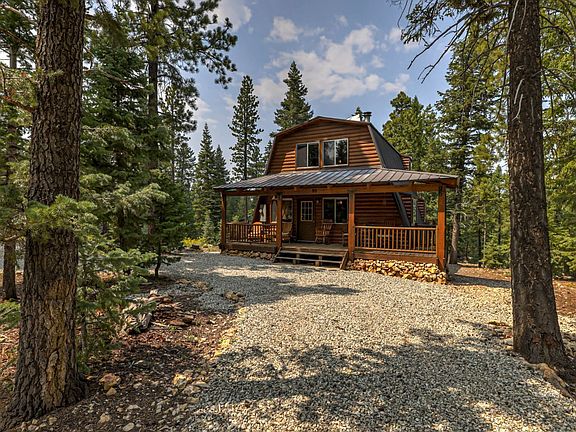 Tucked behind the trees is a classic cabin with loads of sought after features. Large covered front deck welcomes you in, full height ceilings in the living room with wood burning stove. Newer wood flooring throughout the main floor. Modified A frame design, with plenty of windows for natural light. Dining room is off the galley kitchen. Full bathroom and bedroom located on main floor. New washer and dryer installed. Uncovered back deck overlooks the fire pit. New railings lead upstairs to the large loft bedroom w/ 3/4 bath and bonus sleeping area. Horseshoe driveway recently rocked provides plenty of parking for family and guests.