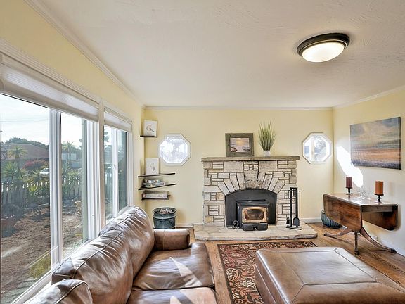 A charming Seaside home with great outdoor space. This three bedroom, two bathroom house is warm and inviting with gorgeous hardwood floors and plenty of natural light. The cottage-style kitchen offers beautifully maintained butcher-block countertops, a large farmhouse sink and a five-burner stove fit for a chef. A generous master suite features vaulted ceilings with a sky-light, a walk-in closet and french doors to the back deck/patio. With an over-sized corner lot, this home has a variety of outdoor space to garden, relax and entertain. The front yard houses raised garden beds, fenced in by a white picket fence, while the backyard offers multiple patio spaces and is landscaped with lovely succulents. Located just minutes from the beach and shopping. There is the opportunity for extra parking aside from the 2-car garage.