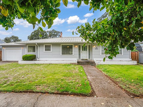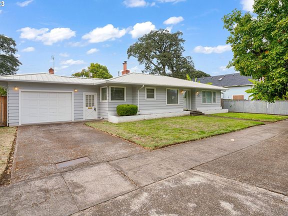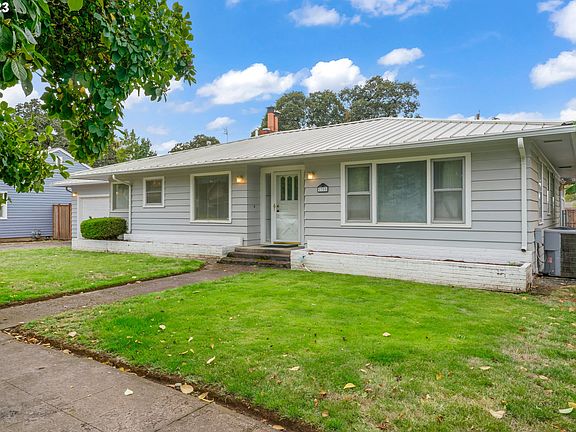 Charming 1947 home, retains the character such as beautiful hardwood floors in Living/dining area with gas fireplace, wood paneled 3rd bedroom/den, many period built-ins. Updates include standing seam metal roof, central gas forced air heat with heat pump cooling. Modernized kitchen with cabinets, farmhouse sink, eating nook. Large windows look out on patio with retractable awnings and covered deck areas. Attached oversize garage facing street and detached garage with ally access. Mature landscaping. close to schools, park and shopping.