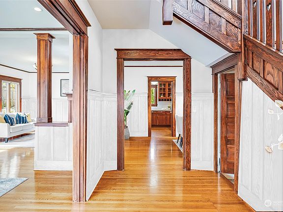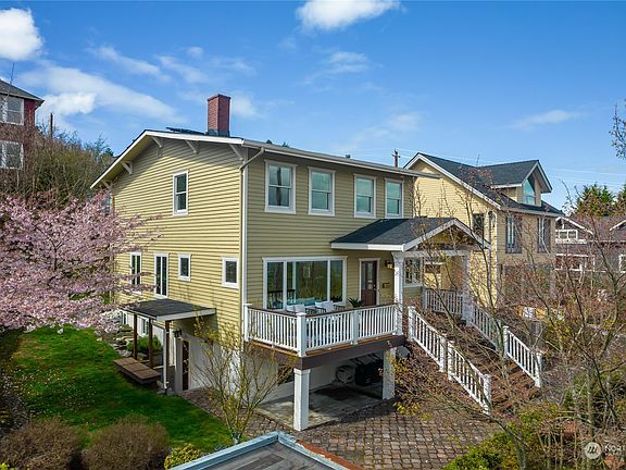 Though much has changed to this restored 1904 home over the years what has remained is the great location & amazing views to the east of Lk WA, Cascades & Bellevue. Large rooms on the main feature gorgeous period detailing; wainscoting, crown mldng, built-ins, high ceilings, hrdwds & updated ktchn. Upstairs Primary Suite w/walk-in closet faces the view, & shares the floor with 2 additional large bdrms & an updated full bath. The lower level w/an outside entrance has a full ktchn, bath + 2 bedrooms, perfect as a RENTAL/AirBNB or an in-home office. Fully updated systems, plus newer roof & solar panels ($10/monthly utility bills) complete this home. The view deck, 2-car garage & sun-drenched garden are bonus. Seller Financing Available.