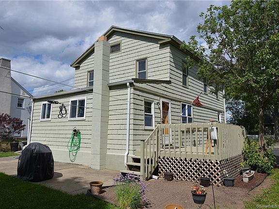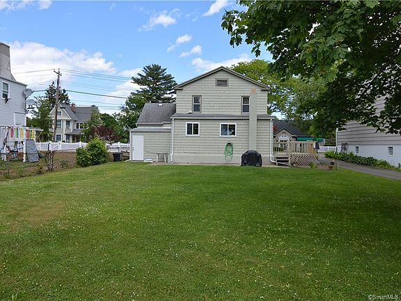 Unique home was once a two family and could possibly be converted back with waiver. Separate heating systems and electrical panels still in place. Lots of historic charm throughout! Entry foyer leads to formal living room with French doors, fireplace, and built in bookcases. Formal dining room with fireplace is currently used as a family room. First floor master suite with full bath. Bright and sunny kitchen overlooks beautiful yard, just perfect for picnics and outdoor celebrations. Gate access to adjacent street in rear yard. Freshly painted exterior and large deck off eat-in kitchen. Claw tub in upstairs bathroom. Mostly newer windows throughout house. Ample shed for additional storage. Pride of ownership in this inviting home! Walk to train/Stratford Center. Also close to town boat ramp and Short Beach Park which features Par 3 golf, swimming, fishing, tennis, volleyball, summertime movies, special events, and more!