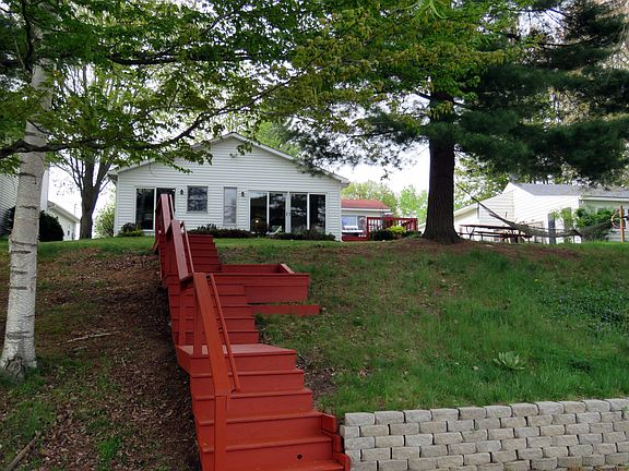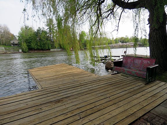 Wixom Lake Waterfront Home! 60' feet of frontage with a steel seawall and permanent dock. Easy access stairs lead you to the water and fire pit area. The 1600 square foot home has 2 bedrooms and 2 full baths. Large master bedroom with lake views, vaulted ceiling, sky lights, large closets and en suite bathroom. Large all season sun room with vaulted ceilings, sky lights, three slider doors with access to the deck. Well appropriated kitchen with ample storage space and new dishwasher and refrigerator. Open concept kitchen, living and dining room with new flooring. 10x14 utility room offers more storage and access to the 1.5 car attached garage. Central air, natural gas heat, washer/dryer hookups and Specturm cable/internet is available. Additional 60x150 lot across the street with a 2 car garage that is great for storage. Fenced in yard space for the dog too! Showings Friday-Sunday only. Text/Call Scott at 989-513-9532 or email jrosin070@gmail.com