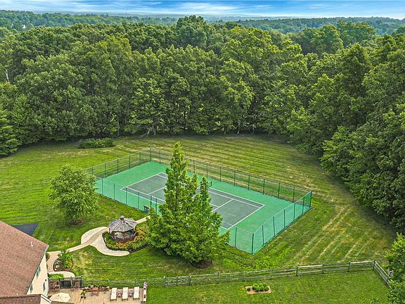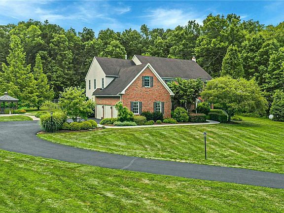 At first glance it is evident that this brick home was custom built for the current owners. In complement to the 2-story family room, with brick fireplace, is a large country kitchen, and a four-season sunroom, opening to two back patios for summer dining. The first floor continues with dining and living rooms, office and a two-story central staircase. The second floor is enchanting, with a large, primary suite and sitting room with fireplace, and 3 additional bedrooms with back staircase. The finished lower level offers game room, rec room and exercise room. A 3 car garage and 22 KW generator are an extra bonus.