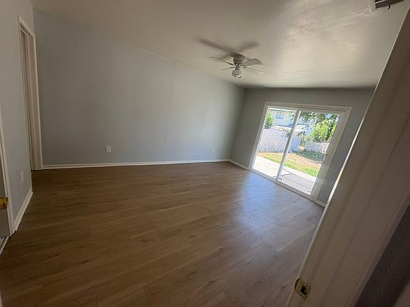 This beautiful 3 bedroom 2 bath home with attached 2 car garage is located within 5 minutes of San Bernadino Valley College, freeways and shopping. *Elementary and Middle School is within short walking distance. *Corner lot with large front and rear yard, shade tree. *Security fencing in front and Lattice covered concrete patios . *Kitchen has cherry wood cabinets with new granite countertops, free standing range gas and hood vent. *Bedrooms and living area has new vinyl flooring. *Central forced heat and air/conditioning throughout. *Living room is spacious with built in bookshelves and a wood burning fireplace. *Washer / Dryer (gas) hookups are located in attached 2 car garage. *New ceiling fans placed in master and living room *New toilets in bathrooms. *Master shower has new tile and new glass enclosure *All utilities to be paid by tenant Background, credit and reference checks are required. Lease term: 1 year lease minimum. Available for showing to qualified perspective tenant by appointment ONLY... This wont last.. Prior to requesting showing please fill out application and submit background check. Please provide copy of DL for security reasons. Please call or email. Thank you! Renter to pay for all utilities during occupancy.