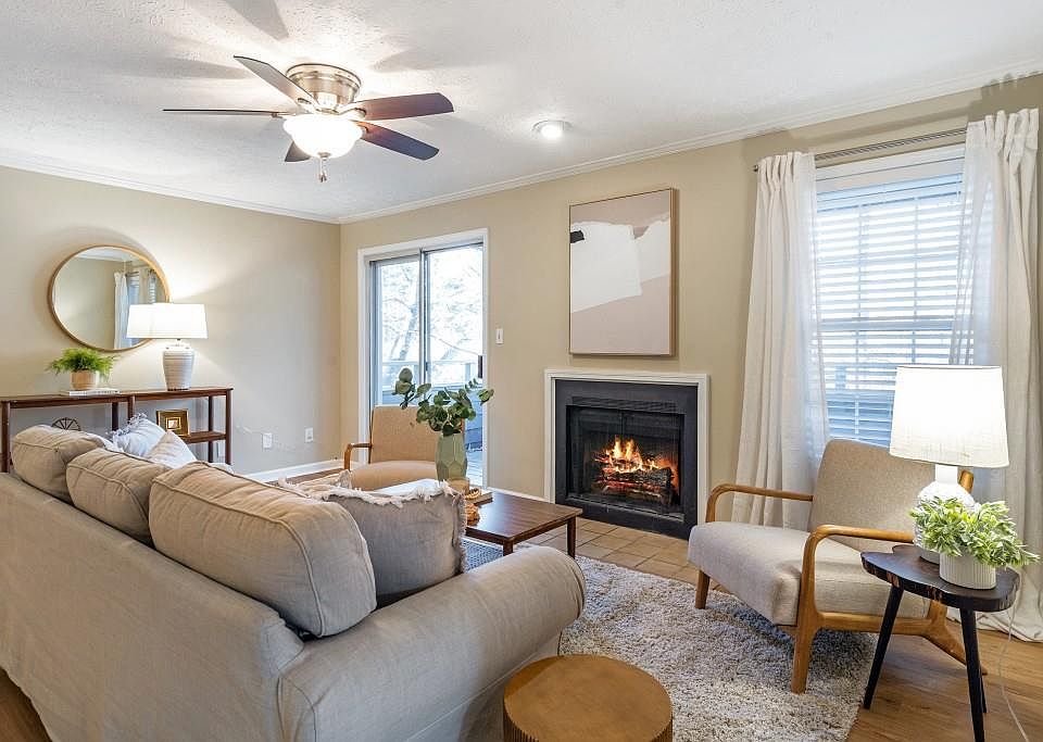 Nestled in the serene community of Druid Forest, this beautifully updated two-bedroom condominium offers an open floor plan with peaceful wooded views. Recently repainted in 2024, the entire complex feels fresh and inviting. The home begins with a welcoming foyer and a convenient coat closet that flows seamlessly into the fireside living room and dining area. Brand-new luxury vinyl plank floors run throughout the main living spaces, adding elegance and durability. Large sliding glass doors frame the tranquil wooded surroundings and lead to a spacious covered balcony with a storage closet-perfect for enjoying quiet mornings or evening retreats. The dining room features recessed lighting and a stylish chandelier, while a passthrough to the kitchen ensures effortless entertaining. The newly repainted kitchen and cabinets shine with white cabinetry, granite countertops, stainless steel appliances (including a gas range and two dishwasher drawers), a tile backsplash, a pantry, and a built-in desk. A large window completes the space, bringing in natural light and highlighting the calming views. Down the hall, the primary suite offers a generous bedroom with neutral carpeting, a walk-in closet with California Closet built-ins, and an en suite bathroom featuring a shower and tub combination. The guest bedroom includes matching neutral carpet and is adjacent to an updated hall bathroom with classic black-and-white design elements, a granite-topped vanity, and a subway-tiled shower/tub combo with a built-in niche. The Druid Forest community provides access to amenities like a swimming pool, tennis court, and wooded trails. Ideally located, this home is just moments away from the Mason Mill trails, Toco Hills Shopping Center, and the newly constructed Children's Healthcare of Atlanta. With proximity to Emory, I-85, Brookhaven, and Druid Hills, this condo combines convenience with the tranquility of wooded surroundings. Welcome home!