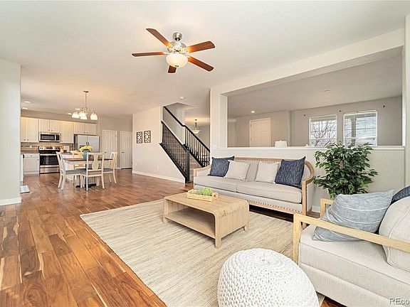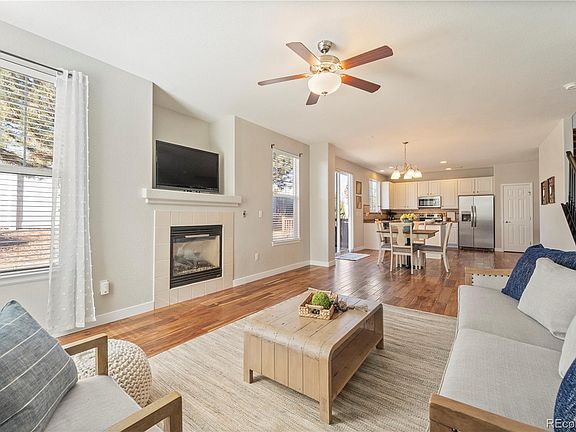 Welcome to this spacious 5 bed, 4 bathroom home nestled in the vibrant community of Auburn Hills. Step into the open layout leading into a seating area, the family room with a fireplace, and the kitchen with a formal dining space tucked to the right. The entire home top to bottom has been newly painted including kitchen cabinets and stair railing. Sliding doors from the kitchen take you to your oversized Trex patio to enjoy some time outside in the sun with a large privacy fence and a zero maintenance backyard saving you tons on your water bills. Upstairs you'll find the expansive primary bedroom with walk in closet along with a generously sized loft with built in shelving along with two of the secondary rooms. In the basement, are the fourth and fifth bedrooms that are both conforming with a large bathroom to share, along with the den/family room. In the large 2 car attached garage there is a bonus cook area with cabinets providing ample storage and a gas stove perfect for those large get togethers with loved ones. Conveniently located near highway access to E470, parks, schools, shopping, this home offers the perfect blend of comfort, convenience and versatility to make it your own. Book your showing today!