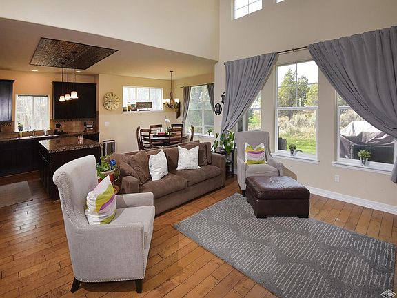 The Perfect Location! This 4 bedroom/4bathroom home features a large main level master, hardwood floors, granite countertops and a finished basement complete with wet bar for entertaining. The half acre lot backs to BLM and boasts a large outdoor stone patio with gas fire pit. Perfect area to enjoy the mountain views from.
