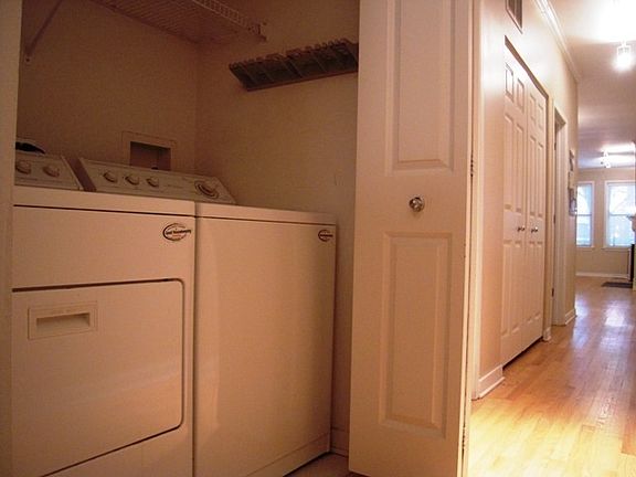 Spacious first floor 2 bedroom 2 bath condo on desirable Little Italy block steps to Taylor Street. Mint condition freshly painted walls, refinished hardwood floors and brand new carpeted bedrooms. Large bedrooms w/great closet space. Open living/dining space to kitchen w/full line of appliances and granite counters. Gas FP and wine fridge in living room. Full size laundry in unit. Large deck above garage space.