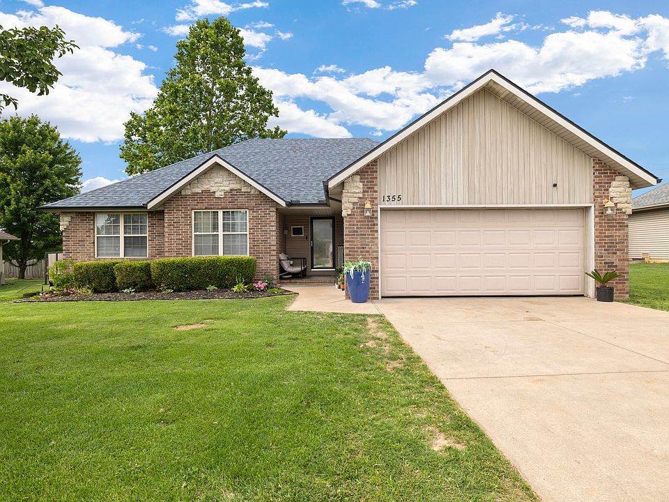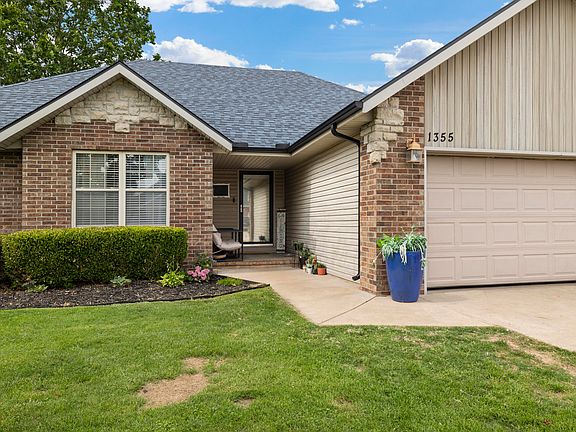 Welcome to 1355 Stonehouse Road in the desirable Cedar Heights neighborhood of Nixa! This well maintained single level home offers fabulous curb appeal with a beautiful brick & stone front, complemented by updated landscaping that creates a warm & inviting first impression.Inside, you'll find fresh paint throughout, brand new carpet, new vinyl plank flooring & updated bathrooms with stylish accent walls. The open concept layout includes 3 spacious bedrooms & 2 full bathrooms, including a private primary suite with a 16x12 bedroom, a generous 12x6 walk in closet, double vanities, a walk in shower & a jetted tub.The living room features soaring ceilings, a cozy gas fireplace, a built in bookshelf, an office nook, gorgeous archways that add character & tons of natural light. The kitchen & dining area offer painted cabinets, stainless steel appliances, a breakfast bar & ample cabinetry, perfect for both daily living & entertaining.Additional updates include a new roof & gutters in 2022, ensuring long term value. Outside, you'll love the full wooden privacy fence that surrounds the huge lot, offering clean landscaping, plenty of space to enjoy & no back neighbors for added privacy. The concrete patio is ideal for relaxing, grilling or hosting guests.This home is clean & truly move in ready. Located in a quiet neighborhood, it offers peace & comfort while still being close to Nixa's top rated schools, shopping, restaurants & parks.This property is the perfect blend of comfort, style & function in one of Nixa's most sought after communities. Don't miss your opportunity, schedule your private tour today!