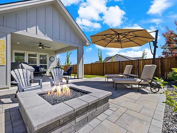Prime corner lot in one of Nampa's most coveted neighborhoods, Summit Ridge. The open floor plan is perfect for entertaining, highlighted by soaring cathedral ceilings with wooden beam accents and a stunning floor-to-ceiling fireplace, creating an atmosphere of refined comfort. The gourmet kitchen is a chef’s dream, featuring quartz countertops, stainless steel appliances, a striking tile backsplash, and a grand 12' island. The owner's suite is a private retreat, boasting elegant tile flooring, a wrap-around tile shower, and a separate soaking tub for ultimate relaxation. The backyard is an oasis, featuring a luxurious inground spa with water feature and lighting, surrounded by exquisite travertine tiling. Enjoy evenings by the custom fire pit on the paver patio, surrounded by lush landscaping—an ideal setting for summer gatherings. Oversized 3-car garage! Community features a community pool, bocce ball, tot lot, green space, and serene views! Ask Agent for Features List!