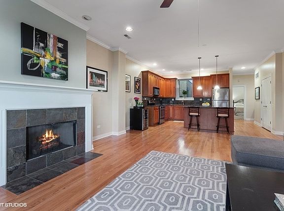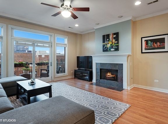 Welcome to the West Loop. Boutique west loop elevator building. Spacious & sunny w/quality finishes. Incredibly low assmts on a quiet street in W-Loop. 42" cherry cabinets, granite, SS, hardwood, washer/dryer. Split bedroom floor plan with drywall to the ceiling in both rooms, fireplace, and 2 outdoor spaces... 1 facing Washington w/fabulous city views & the other off the east side of unit facing south. Additional roof-top deck for more outdoor space. Baths w/European height vanities & marble. Large walk-in closet. Great closet space plus add'l storage. Garage space included in price & assmts. Pet Friendly bldg