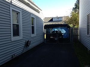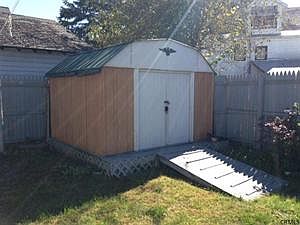 This 2 bedroom single family charming bungelow is a steal. This home offers an open concept livingroom and diningroom combo with Pergo flooring. Both bedrooms have original hardwood flooring as well. Large eat in kitchen with lots of counter and cabinet space. Laundry room located on first floor. Ample amount of storage space located in the full size attic and basement with work area. The property has a great size fenced in back yard with deck, newer shed for outside storage and carport. House is sided and has newer windows. Furnance and hot water tank less than 10 years old. Property heated by hot water baseboard heat. Low Taxes!--