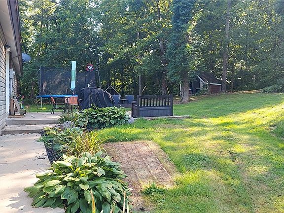 Secluded in a wooded country setting is this 3 bedroom, one bath 1260 sqft Ranch sitting on 1+ acres. It has a full basement for laundry and lots of storage. An attached 2-car garage with electric gives access to the spacious eat-in kitchen. A deck on one side and patio on the other to enjoy your outdoor areas. Two outbuilding/sheds that were used for storing yard tools. New furnace and ductwork. French drains installed this year. Get a showing scheduled today!