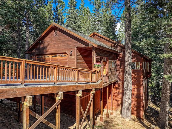 Make this spacious Tahoe Donner home, that offers a peaceful in the mountains vibe, your own. Enter an open living room space and the forest greets you from the corner to corner windows. Two doors to a private back deck surround the woodstove and the floor to ceiling river rock. The wrap around deck has stairs down to the backyard for fun kid and pet access to the great outdoors - The Perimeter and Emigrant Trail can be accessed directly from the backyard. The downstairs area also provides a deck access door. The traditional floorplan provides room for everyone and eliminates wasted space. A flat driveway provides easy access to one floor living with the primary bedroom off of the great room. The Pathway Ave location is extremely convenient to Tahoe Donner Trout Creek amenities, trails and Alder Creek Drive which all savvy locals know is a bonus. The original home design with vast space under the house offers expansion options.