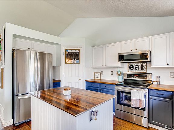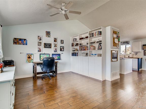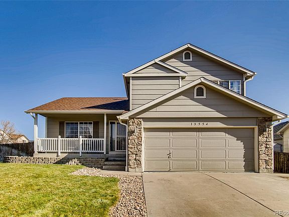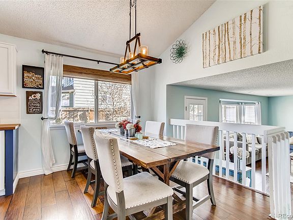Turn-key beautifully updated Park Ridge Villages home on a corner lot. A charming front porch leads to the open and airy main floor that is accented by abundant natural light, a vaulted cathedral ceiling & updated flooring. Farmhouse-style eat-in kitchen delights with butcher block countertops, a tile backsplash, stainless steel appliances, stylish 2-tone cabinetry, an island with beadboard accents & a pantry. Lower level hosts a spacious family room with a bay window and an updated powder room/laundry room. All 3 bedrooms are conveniently located on the upper-level. 2 secondary bedrooms share a gorgeous remodeled bathroom while the primary bedroom has a cathedral ceiling and a luxurious 5 piece bathroom. Spa-like primary bath boasts a barn door, free-standing soaking tub, lovely tiled shower with 2 rainfall showerheads, beadboard wainscoting & unique dual vessel sinks atop a wood countertop. Unfinished basement is a blank canvas providing great storage space or the potential to finish and expand into down the road. Soak up all 300 days of Colorado's sunshine from the large fenced yard complete with an expansive patio. Prime location in a welcoming neighborhood down the street from Trail Winds Park & Open Space and a few blocks from schools, the Thornton Village Pool, shopping & dining.
