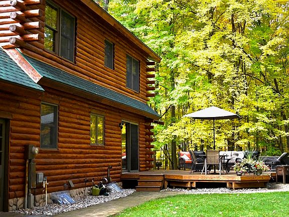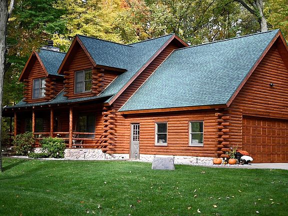 Beautiful full log home sits on 3.53 acres with a well maintained pond(20 ft deep) including a beach area. This is a Grizzly Bob Cabin Fever log home and is where quality matters with an award winning Grizzly Bob log home. The art and craft of growing plants with a goal of creating a beauty within the landscape is what you will see as you drive up the driveway. Enjoy a pair of rocking chairs or a swing for a comfortable perch under the wraparound porch with a wooded view. Now let's take a walk inside. This home boasts an open floorplan with a beautiful kitchen, main floor laundry, spectacular wood everywhere, mini-split air conditioning units, security system, bay window, propane high efficiency hot water heat and beautiful custom bath with jetted tub. So many things to enjoy within this property, come take a look for yourself but be prepared for love at first sight.