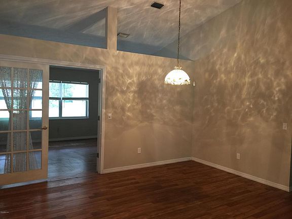 Nestled under the large oak trees of Country Woods Estates, this 4 bedroom, 3 bath, pool home offers peaceful country living. Located on just over 3 acres, and with over 2,100 sq. ft. of living space, this home features tile and laminate hardwood floors throughout, living room, separate family room with stone fireplace, kitchen, dining area, inside laundry room, spacious master bedroom and bath with French doors that lead to the patio, double sink vanity, separate walk in shower and bathtub, in ground swimming pool with screen enclosure, 2 car garage, as well as detached garage that makes for a great workshop or place to store your ''toys''! Be sure to check it out! This is a Fannie Mae property.