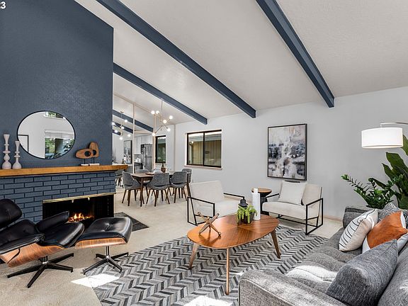 Craving mid-century vibes? Searching for that elusive one-level home? Hoping for little-to-no yard maintenance? Look no further! This gem of a home is loaded with cool, mid-century design features, including a wide, double-door entry, vaulted ceilings with exposed beams, corner fireplaces and a super cool interior atrium courtyard. The layout is both smart and efficient, featuring formal living and dining as well as an informal family room off the kitchen, two beds and a bath on one side of the home and a generous primary suite on the other. The location in coveted Hyland Hills neighborhood is equally stellar. Just steps from the neighborhood pool and newly renovated clubhouse, half a mile from Fir Grove elementary school, quarter mile from Highland Park middle school, and a little over a mile to Southridge High. Your pick of parks and trails are within easy striking distance (Hyland Forest Park, Lowami Hart Woods, Meadow Waye Park to name just a few!). And a quick, easy commute to Nike headquarters!! Enjoy dinner or morning coffee from a large, partially covered composite deck. Or find serenity in the ultra-private, interior atrium courtyard. Furnace and water heater new in 2023. Roof and a/c new in 2017. Surround yourself with nature and find your zen!
