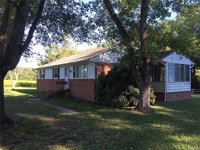 Brick rancher with full basement, which is mostly finished. 4th bedroom & 2nd full bath in basement plus big rec room and small garage. Eatin kitchen, Living room w hdwd floor, 3 bedrooms, bath and screen porch upstairs. Shed and 2 acres about 2 miles west of I-295 in great Hanover school district