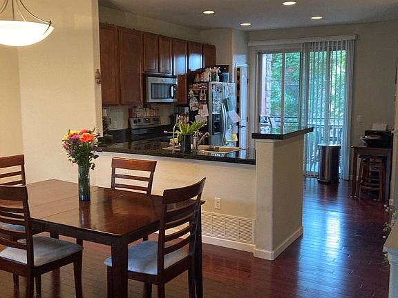 Flexible move-in for August or September 1st. Upscale two-bedroom townhome in the desirable Vantage Pointe development. Hardwood floors throughout main level, high ceilings, laundry room, central heat/air. Two car, insulated garage, covered balcony with walk-in storage closet. View of mountains, Long's Peak. On the end of quiet dead-end street. Access to shared swimming pool, fitness center, hot tub and clubhouse. Easy drive to Boulder, Denver, DIA, mountains, and RTD bus routes. Owner pays water, trash, and HOA fee. Renter will pay other utilities. No smoking please inside property. Two-car garage with private driveway for parking.