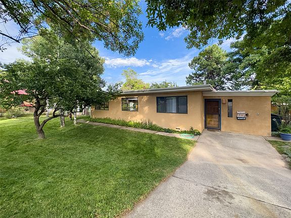 Welcome to 1356 46th Street. This great home is located in the Western Area Neighborhood of Los Alamos. Close distance to the lab, nearby trails, and schools are just a few perks of the neighborhood. It not only has a beautifully landscaped large backyard that includes a great storage shed and already mature garden beds, but it also has an amazing fully landscaped front yard. As you enter the home you will be welcomed by tongue and groove ceilings, original hardwood floors and upgraded fireplace insert. Just off the living area is a lovely dining area with views of the back yard and pass through bar top to the kitchen. The kitchen features plenty of cabinet and counter space with endless opportunities to make it your own. Off the kitchen is an additional family room, which was originally a carport with its own entrance and welcoming foyer. The primary bedroom not only has great storage space but it also has an ensuite bathroom. As you head down the hall to the second bedroom you will notice the intricate handmade tile. The second bedroom has library shelving against the entire wall and access to the second bathroom. The built in storage in the hallway and the large laundry room are just a few of the simple things that really make this home unique. This house has great value and the opportunity to be made into a dream home! Make sure not to miss this one!