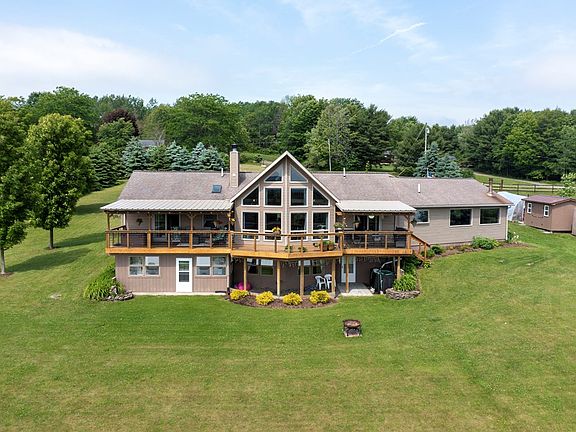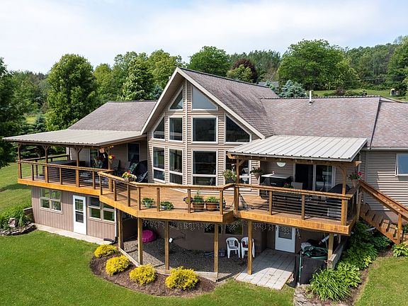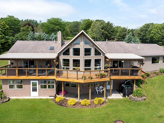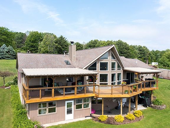 HUGE PRICE REDUCTION on this meticulously cared for ranch home on 15 manicured acres with a stocked pond and valley views. Custom cherry kitchen, cathedral ceilings, a wall of windows in the living room allows plenty of natural light. Walk out basement hot water baseboard heat A spacious deck partially covered that overlooks the yard and pond, relax in the hot tub and enjoy the view 2 car garage with epoxy floor and work bench, paved driveway No detail has been overlooked in this home. Easy drive to Corning, Horseheads, Watkins Glen, Seneca Lake and all the Finger Lakes area offers