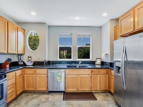 3 master bedrooms, 3.5 bath, ( 3 bathrooms are En Suite ) , 2 car garage, appliances included. Washer & Dryer in unit. Has A/C unit. Walk to school, markets, park, coffee, restaurants. Hiking and biking trails start just outside. BBQ and Tot lot in complex. Short walk, just steps to Starbuck, Albertsons, great restaurants, parks, hiking, beautiful double peak view/park/outlook near by