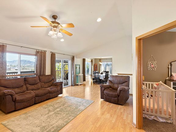 Cream of the crop! Step inside to explore the countless possibilities this home offers. Main level boasts 3 bedrooms, 2 full baths, spacious kitchen with breakfast nook, and full laundry facility. An expansive deck with therapeutic hot tub overlooks open space. Downstairs is complete with 2 bedrooms with private vanities in each, bathroom, stackable washer/dryer combo and kitchenette. Home is complete with a theater room, concrete patio, garden area, fully fenced back yard and ample parking.