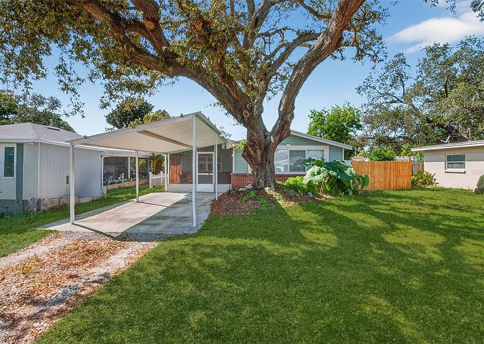 One or more photo(s) has been virtually staged. Spacious 2-bedroom home featuring a brand-new updated bathroom, new flooring throughout, and fresh paint and blinds. Enjoy the large kitchen with updated appliances, a new laundry room, and new AC (2023). The property sits at the end of a quiet street with county land behind for added privacy. A large yard and storage shed complete this move-in-ready home! Convenient location close to Publix, shopping, and just 5 miles from world-famous Clearwater Beach!
