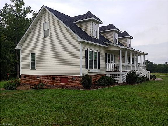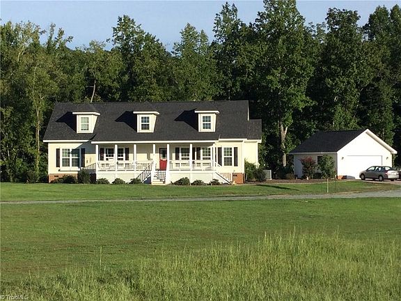 Enjoy the quiet of country living just minutes from town! This Cape Cod style house, built using 2x6's in a controlled environment resulting in exceptional stability and insulation value, sits on over 7 acres just outside Randleman. Open-floorplan features 9' ceilings, entry/living room/kitchen with two BR (incl primary), two full BA and office on the main level. Under-cabinet lighting. Primary bath features a 4'x6' walk-in shower and separate water closet. Soft-close drawers throughout. Spacious 36' long covered front porch. Second floor features 2 BR, bath with walk-in shower, and a large bonus room. Outside is a fenced 36'x44' garden area with composting/storage station, a historic corn crib, detached 2-car garage and a wired 24'x48' barn with 8'x48' shed roof overhang for equipment storage, woodworking, or possibly conversion to an in-law suite. Deer and turkeys frequent the partially-wooded grounds. Spectrum just extended service to this house as well. Schedule your showing today!