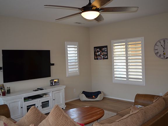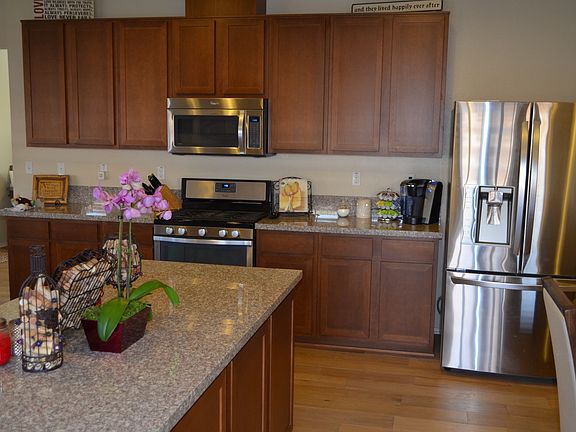 This beautifully upgraded home takes you from "nice" to SPECTACULAR with a dazzling palate of upgrades throughout! Featuring 4 bright and airy bedrooms with one bedroom downstairs. Three (3) tastefully appointed full bathrooms. There are contemporary wood shutters throughout house, and elegant hardwood flooring throughout lower level and stairs. Luxurious and friendly open concept kitchen with mirror-like granite counter tops, rich wood cabinetry, stainless steel appliances and featuring a large island and breakfast bar. The living room and one upstairs bedroom have ceiling fans. Indoor laundry room with generous space for storage. All of the rooms are spacious, 3 car garage, fully landscaped, concrete slab in backyard, and much more. The backyard features a grass area and a horseshoe pit. Close to school, park, trails, picnic areas, etc. In addition, it's close to shopping center and golf courses. Call today to view the property.