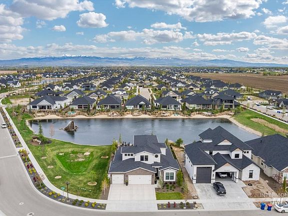 'Best Priced Beachfront Home in Legacy'! Experience luxury in this modern farmhouse style home that backs to picturesque pond in Eagle's prestigious Legacy Subdivision. Enjoy the tranquil water feature & private beach with a fire pit, offering breathtaking mountain & pond views.Thoughtfully designed floor plan boasts upgraded engineered hardwood flooring, a gourmet kitchen w/Thermador appliances, & elegant lighting & plumbing selections. Luxurious primary bedroom w/patio access & an upscale ensuite features heated bathroom floors & convenient access to the laundry room. Plus a 2nd main floor bedroom w/full bath. Upstairs, enjoy two more bedrooms, a full bath, & a spacious bonus room with French doors that open to large balcony overlooking the pond & serene views. Indoor/outdoor surround sound speakers enhance leisure time & entertainment gatherings. The 3 car garage ensures comfort year-round with a Lennox mini-split air-conditioner and gas wall heater & luxurious landscaping completes this upscale home!