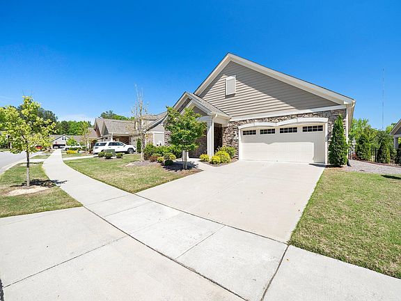 Embark on a journey of luxury and modern living with this exquisite 2020-built Portico builder model home in the heart of Wake Forest, NC. Step into a world of sophistication and functionality as you are greeted by dramatic transitions, a grand formal entryway, and a seamless open design adorned with stunning archways. Every corner of this home is thoughtfully crafted for your comfort and convenience, boasting wall sockets, ceiling lights, and fans in every room. The gourmet kitchen is a culinary masterpiece featuring soft close cabinets, a vented hood, and top-of-the-line built-in appliances. Indulge in the luxury of a private den, a cozy porch off the owner's suite, and walk-in tile showers designed with accessibility in mind. The oversized Pella window offers breathtaking views of the courtyard patio and fountains, creating a serene and tranquil ambiance. This home is equipped with integrated audio, an oversized laundry room with a sink, a spacious pantry, and a whole house water filter, elevating your living experience to new heights of luxury and convenience. Nestled in the sought-after community of Wake Forest, NC, this home is not just a house; it's a lifestyle waiting to be embraced. Don't miss your chance to experience the epitome of modern living in this exceptional home.