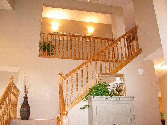 Beautiful custom built 4 bedroom home with open floor plan. Vaulted ceilings. Eat-in kitchen has hardwood floors, island, & built-in wine rack. Kitchen open to spacious family room with fireplace. Large master suite with vaulted ceiling & walk-in closet. Master bath has jacuzzi tub. Open foyer with very nice staircase & balcony. Recessed lights. Patio doors to nice deck. Park across the street.