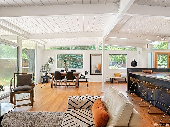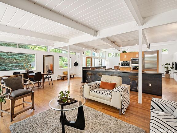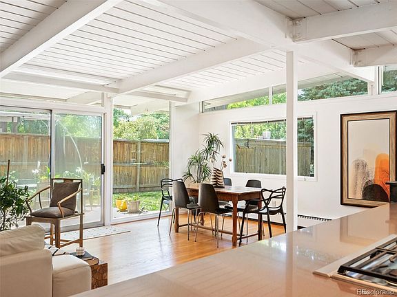 Stunning mid-mod masterpiece in the heart of Krisana Park. This home was featured on a Krisana Park home tour with its elegant and elevated design that enhances every feature of the home and amplifies the alluring elements of mid-mod architecture. There is a reason the magnificent orchids grow so well here. The light and flow are perfect for thriving. This home lives as artfully inside as it does out. The spectacular 1000+SF addition boosts the home to 2226 SF and provides the rare 4Bed /3bath layout, adding a new gracious primary suite with access to the yard, an expanded and updated chef's kitchen, open museum quality living/dining spaces, a large laundry/storage/mud room, and a designated office area. The architect-designed addition also sits on a full dry crawl space for additional storage with access from the inside. These are rare features in this era home. The remodeled upscale kitchen anchors the main room with high ceilings, clerestory windows for glorious light and a sliding door to an expanded lanai for outdoor living that is connected by windows. Top of the line Miele, Wolf and Subzero appliances including a built in lux coffee maker. A second ensuite bed/bath also opens to the back yard completing the blending of interior and exterior. Lovely mature trees, a private lush backyard, garden beds already growing your fall harvest, and two off-street parking places complete the winning exterior. Walkable to parks, trails, shops, restaurants, schools, with easy access to Lightrail and to I-25 to get downtown, to the mountains or to DTC. Krisana Park is Denver's Award Winning Mid Century Modern neighborhood. Learn more at www.krisanapark.community.