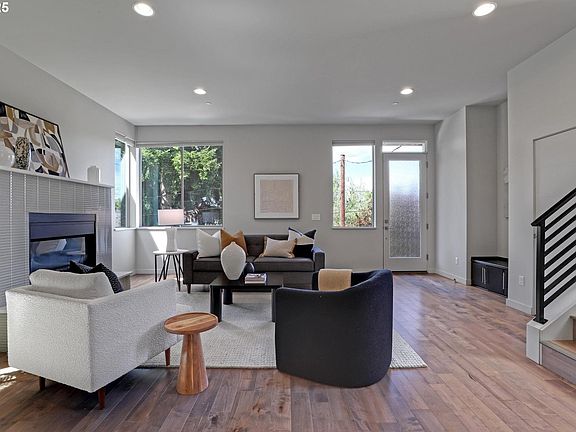 Light filled, well located modern home in the heart of Southeast's Hawthorne/Belmont Neighborhood! Airy, open floorplan with 11'ceilings on the main. Easy and flexible living with high end finishes (quartz, tile, wood floors, modern cabinets, stainless steel gas appliances) plus a gas fireplace, private deck and main floor den/office. Interior fire sprinklers. The primary suite has soaring neighborhood views, an attached bathroom and a yoga/meditation alcove. Great floorplan with 3 bedrooms and 2 bathrooms up and a 4th bedroom, bathroom and family room in the lower level daylight walk-out. HUGE garage/shop and lovely yard (side and back). [Home Energy Score = 4. HES Report at https://rpt.greenbuildingregistry.com/hes/OR10204874]