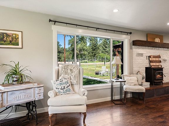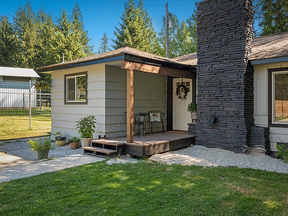 Single level home! Move in Ready! Newly updated and remodeled. New sheet rock,new paint,new vinyl windows,updated kitchen has new granite counter tops,cabinets,floating upper shelving. Sliding barn door,new lights Pellet fireplace insert has brick surround. Nice front yard with beautiful willow tree. Fenced yard. 1 car garage with storage room. A small seasonly drainage in the spring flows through the lower yard! Great starter home!.Great location only a few minutes to Sandpoint.