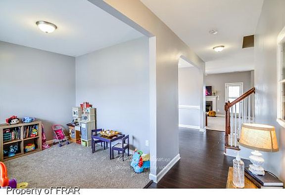 -Almost New 4 Bedroom Home located within 8 min to Downtown & 15 min drive on country roads & highway to Ft. Bragg. Front Porch. Study/Playroom at front of home followed by a Formal Dining room. Open Floor Plan with Family Room, fireplace & large Eat-In Kitchen(granite) with island. 4 Bedrooms, 2 Bath upstairs. Master bathroom with sep. shower & garden tub. Walk-In closet. McKee Homes Nelson floor plan with unfinished 3rd floor. Double Garage & Covered Porch with Fenced Yard. ½ Bath & Mudroom.