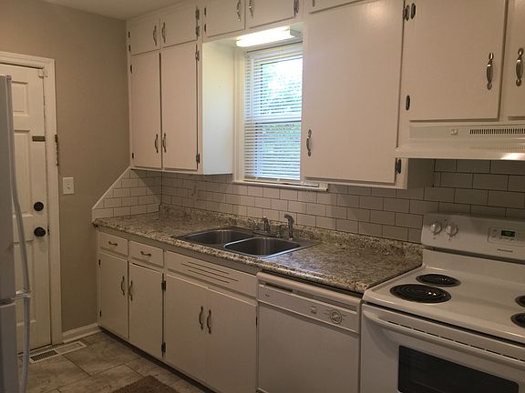 Cozy three bedroom and one bath home with central heating and air and energy efficient windows. Hardwood and tile flooring throughout. Kitchen complete with stove, vent hood, refrigerator, dishwasher, and washer and dryer connections. Yard maintenance included in lease. This is the front home of a two home property (not connected and separately metered).