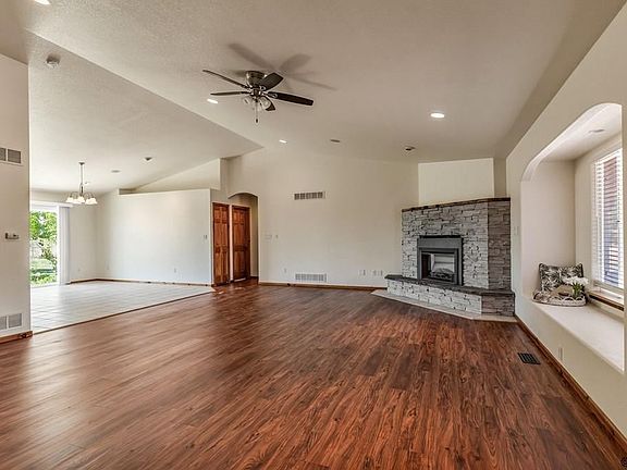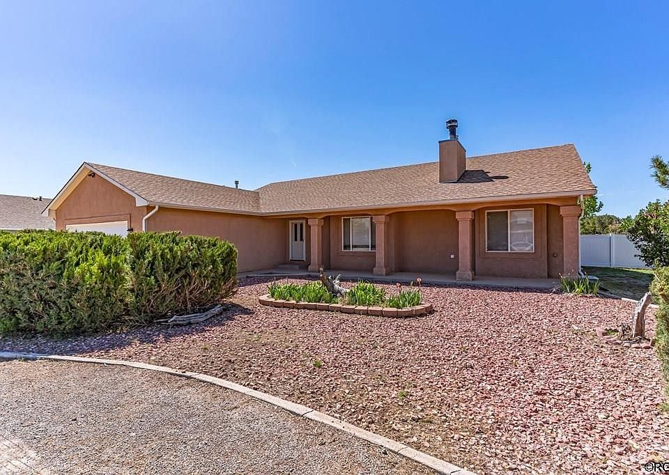 This spacious 4 bedroom, 2 bathroom, 2 car garage home is in an amazing location, only blocks from the entrance to Lake Pueblo! The front yard is xeriscaped for easy maintenance, and the large backyard has a designated spot for gardening, with mature shade trees, beautiful rose bushes, and perennials that will continue to bloom for you every year. Inside the home, the open, split-bedroom floor plan adds a touch of privacy to the master suite, situated on the east side of the home. It offers a walk-in closet, a full bathroom with a jetted tub, a serene bay window, and a private entrance to the backyard through a sliding glass door. Two more bedrooms and the main bathroom fill the west side of the home, with the living room, dining room, and kitchen in the heart of the home. The living room features an electric fireplace in a stone setting, vinyl plank flooring, recessed lighting, and built-in speakers in the ceiling. The tiled dining room is large enough for entertaining with a sliding glass door leading out to the big yard. In the kitchen, beautiful hickory cabinets, nice stainless steel appliances, two pantries, and tons of counter space. The large laundry room is also on the main floor. Downstairs, the blank canvas is ready for your imagination! There is one large, finished bedroom in the basement and a rough-in for another bathroom, but the rest of the huge space is ready for your design! Plenty of room to park your boat and toys! Come tour this awesome property today!
