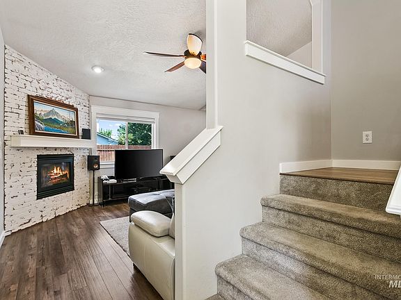 Carefree living at it's best! This end unit is tucked away on a quiet cul de sac & conveniently located close to downtown, BSU, & the airport. Main level has vaulted ceilings, a gas fireplace, updated LVP flooring, & a half bath for guests. The spacious kitchen layout with newer SS appliances is perfect for entertaining. Upstairs has a large primary bedroom w/ roomy ensuite & walk-in closet. Secondary bedroom has it's own bathroom. Oversized 2 car garage & fully fenced backyard w/ a patio. Ample parking.