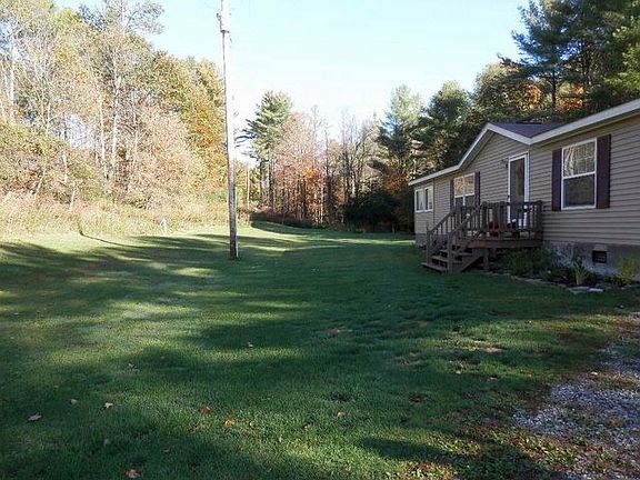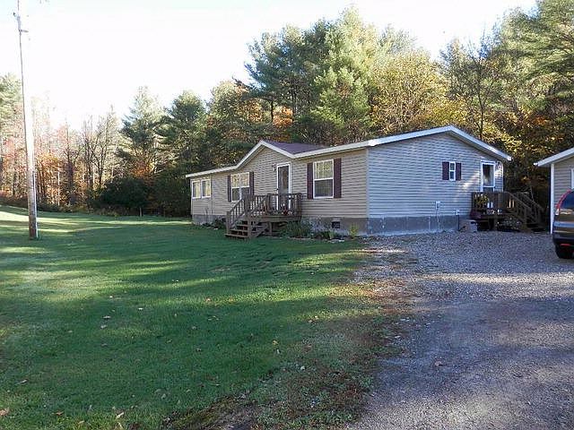 Well cared for manufactured home located on almost 2 acres of land bordering Cold Brook. Offering 2 bedrooms, large sunroom, 1 car garage and automatic generator. Call today to see this one!!